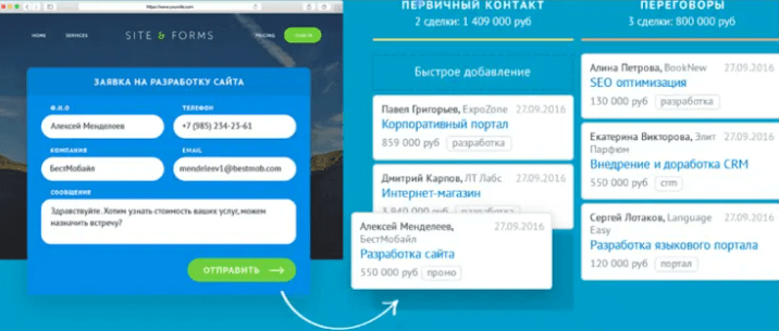 При входящем звонке всплывает карточка с информацией о клиенте и сделках с ним.