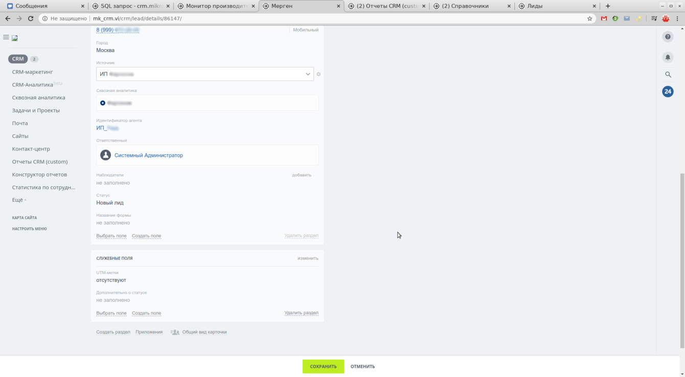 • настроить сквозную аналитику для департамента маркетинга, разработать дополнительный функционал за рамками возможности коробочной системы.![]()