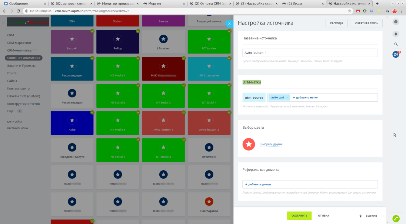 По требованию заказчика было автоматизировано создание источников сквозной аналитики, при добавлении нового значения в справочник «Источники» в CRM.