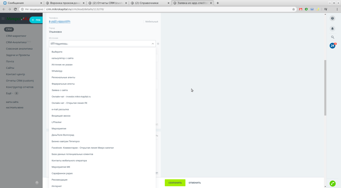 В отделе маркетинга компании «Микро Капитал» для отслеживания эффективности рекламных кампаний по привлечению клиентов используется модуль сквозной аналитики Битрикс24. Помимо стандартных настроек для определения, откуда пришел клиент, есть также дополнительные методы. В частности, если UTM-метки передаются нестандартными методами через доп. свойства, то источник сквозной аналитики для лида присваивается принудительно через реализованное событие. По требованию заказчика было сделано изменение источника сквозной аналитики в соответствии с изменением поля «Источник лида». Это происходит автоматически. При сохранении и изменении лида срабатывает событие, которое корректирует источник сквозной аналитики.