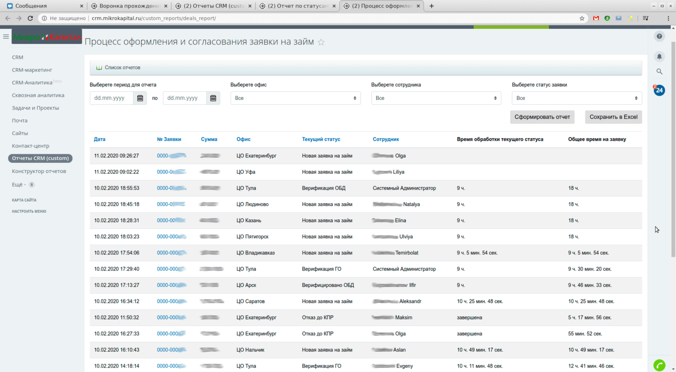 Дополнительно для менеджеров компании формировались показатели перемещения заявок на кредитование (сделки) по стадиям — сколько заявок перешло на стадию в выбранный период, сколько из них на данной стадии отбракованы, сколько осталось в этой стадии.