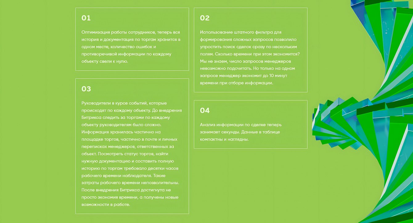 2. Были настроены бизнес-процессы по формированию торгов непрофильных активов, согласование их у ответственных руководителей и публикация торгов на сайте компании.