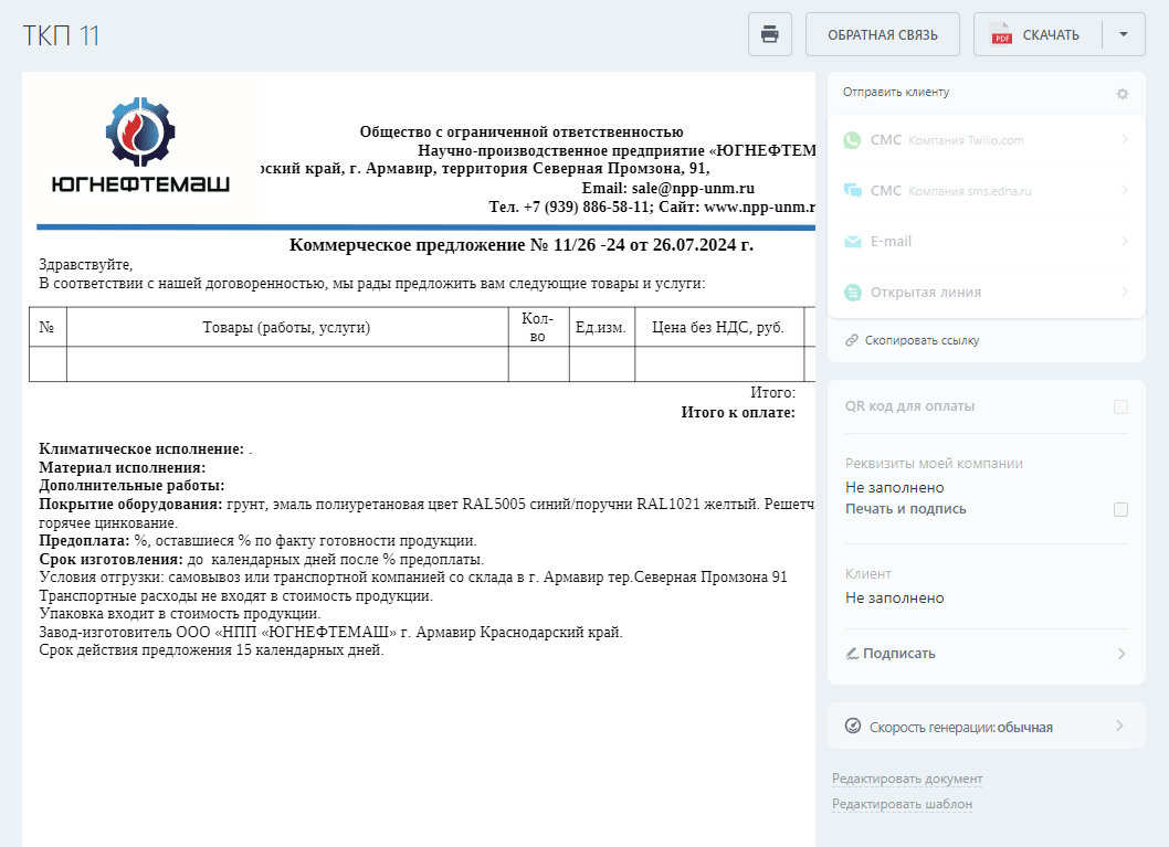 • Ускорили процесс формирования коммерческих предложений благодаря шаблонам