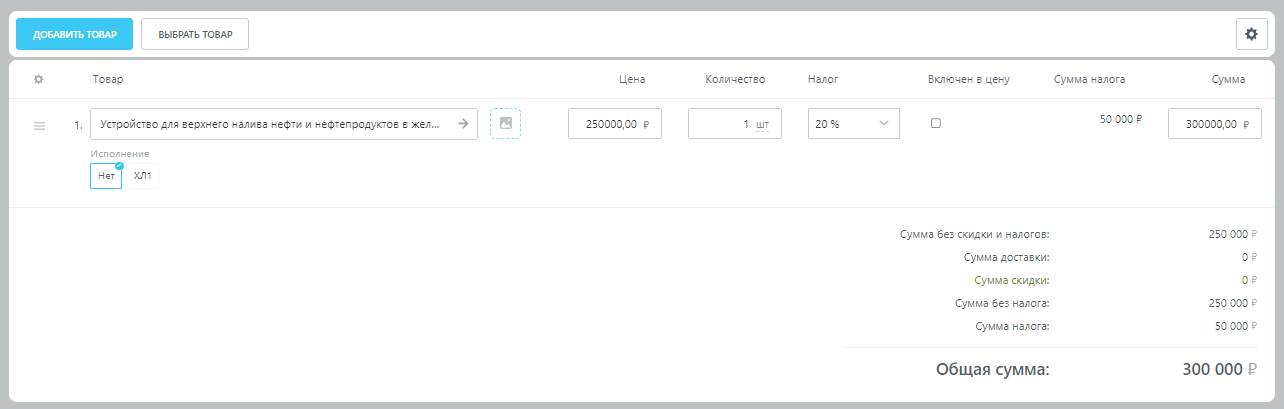 Вторая особенность — автоматическая генерация коммерческого предложения по выбранным товарам.