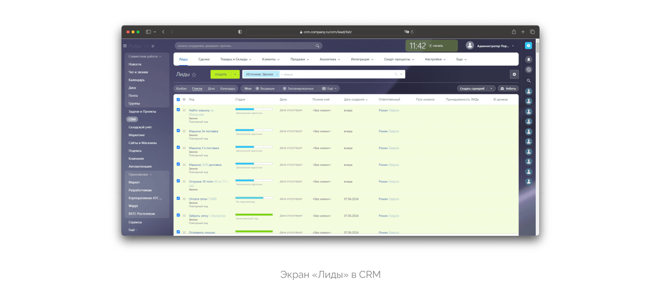 — сократить количество пропущенных звонков и сообщений, и соответственно потери лидов, за счет работы CRM с мобильного, который всегда под рукой;