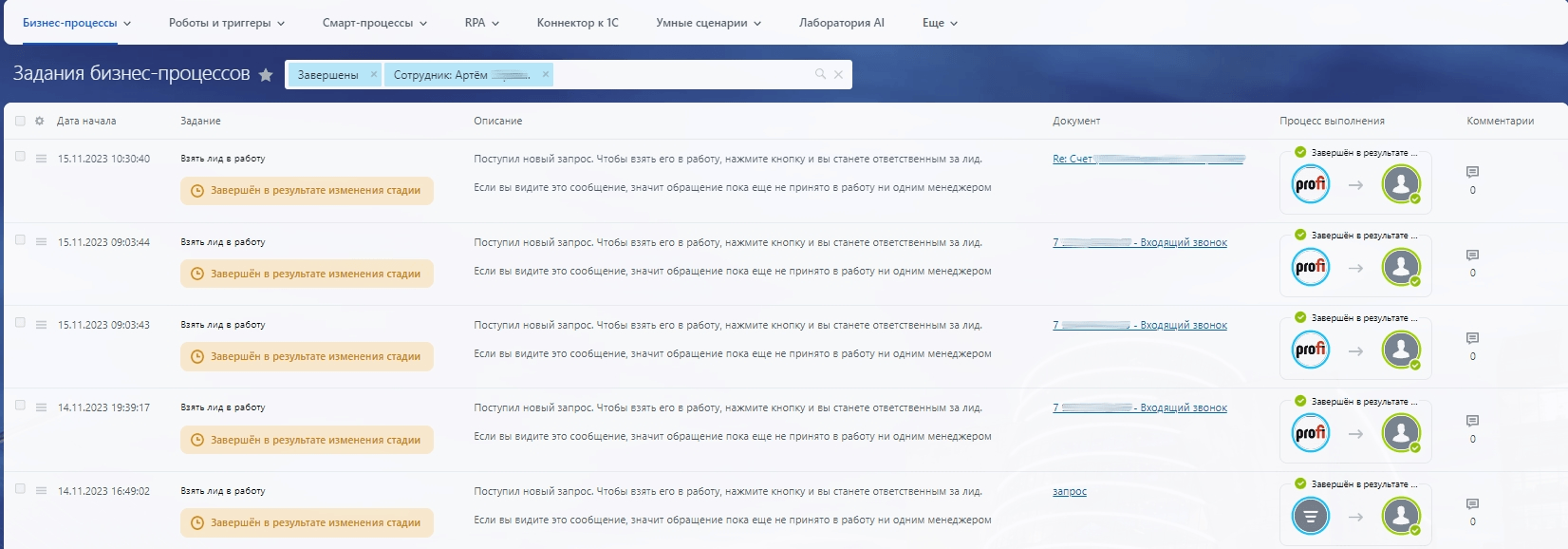 Менеджеры получают специальное задание — кто первый возьмет лид в работу, тот и становится ответственным за его дальнейшее ведение. Это позволяет исключать простои по обратной связи клиенту.