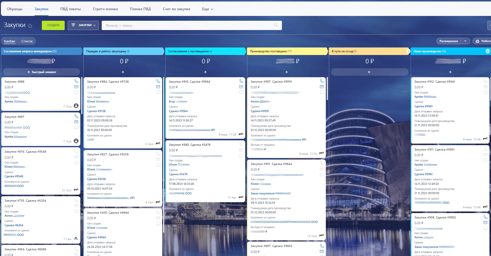 Менеджеры составляют запросы, а закупщик ведет их по воронке — связывается с поставщиками, планирует доставку на склад.