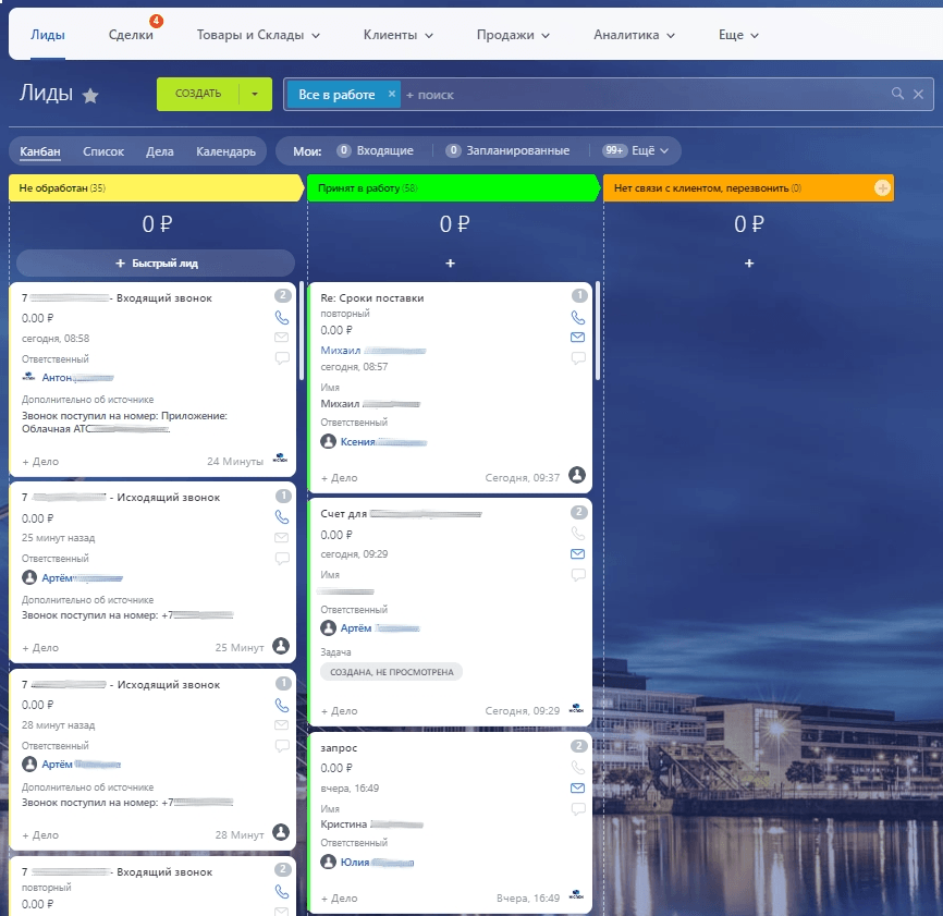 Настроили воронку для ведения лидов. Теперь сразу видно какие заявки находятся в работе, и кто за них ответственный.