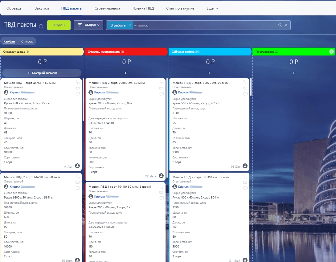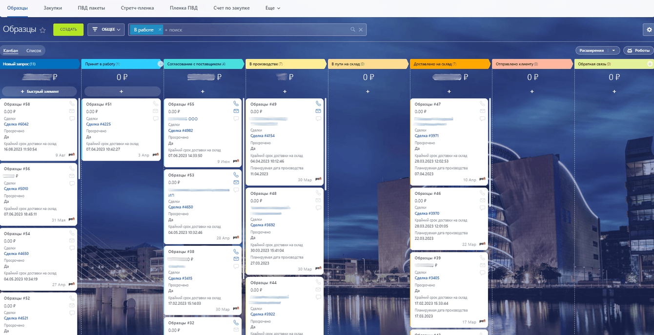 ► Организовали работу и общение в едином интерфейсе для отдела продаж, закупок и производства, обеспечив прозрачность процессов