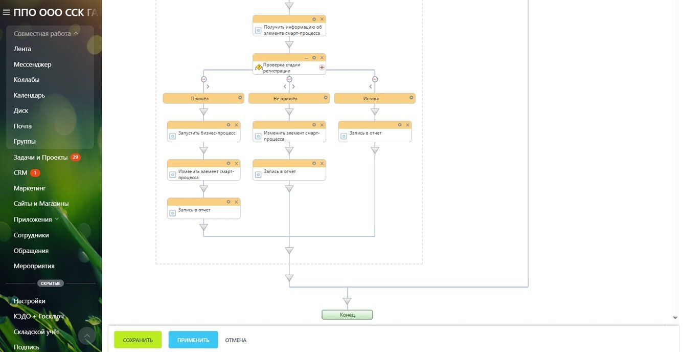В рамках внедрения Битрикс24 в Первичную профсоюзную организацию ООО «ССК „Газрегион“» была проведена комплексная настройка цифровой платформы для автоматизации и оптимизации ключевых процессов. Создана структура портала, приглашены пользователи и выполнены базовые настройки: указано название, задан формат дат, рабочее время, выходные и праздники, настроены карточки сотрудников и контактов. Загружены данные членов профсоюза, подключены корпоративная почта, WhatsApp (через Olchat), Telegram-бот и ВКонтакте, что обеспечило многоканальную коммуникацию. Разработаны CRM-формы для сбора обращений и заявок. При поступлении нового запроса автоматически создаётся Лид, который запускает бизнес-процесс: проверяется наличие контакта, при необходимости он создаётся или привязывается, после чего формируется Смарт-процесс и Лид закрывается как обработанное обращение.