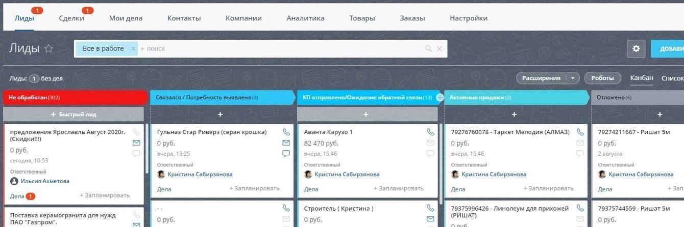 - Настроены роботы для контроля скорости обработки лидов и этапов сделок;