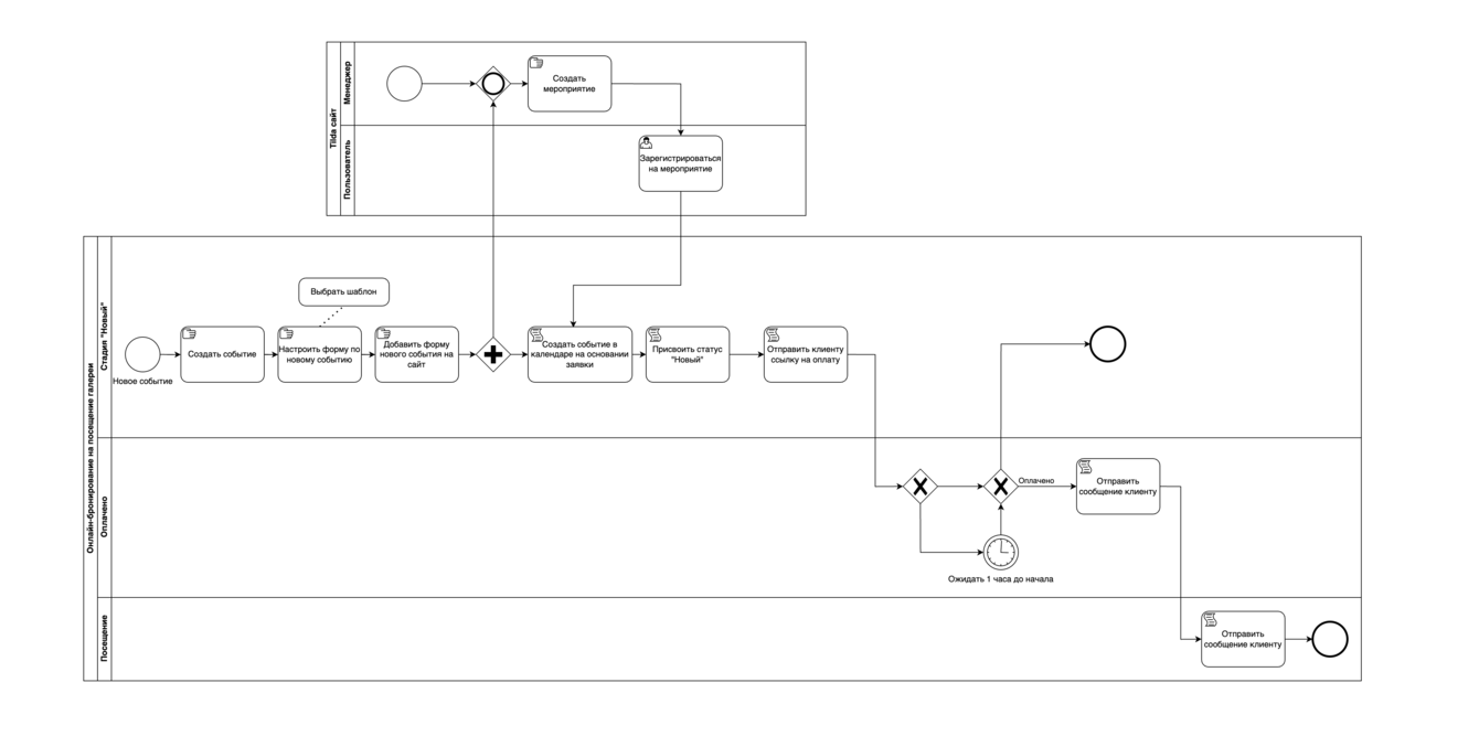 При бронировании посещения галереи в календаре блокировалось время, чтобы никто не мог забронировать это место повторно, а если менеджер в календаре Б24 отмечал определённый день как занятый, например под закрытое мероприятие, то покупатель не мог приобрести билет на это время для посещения.