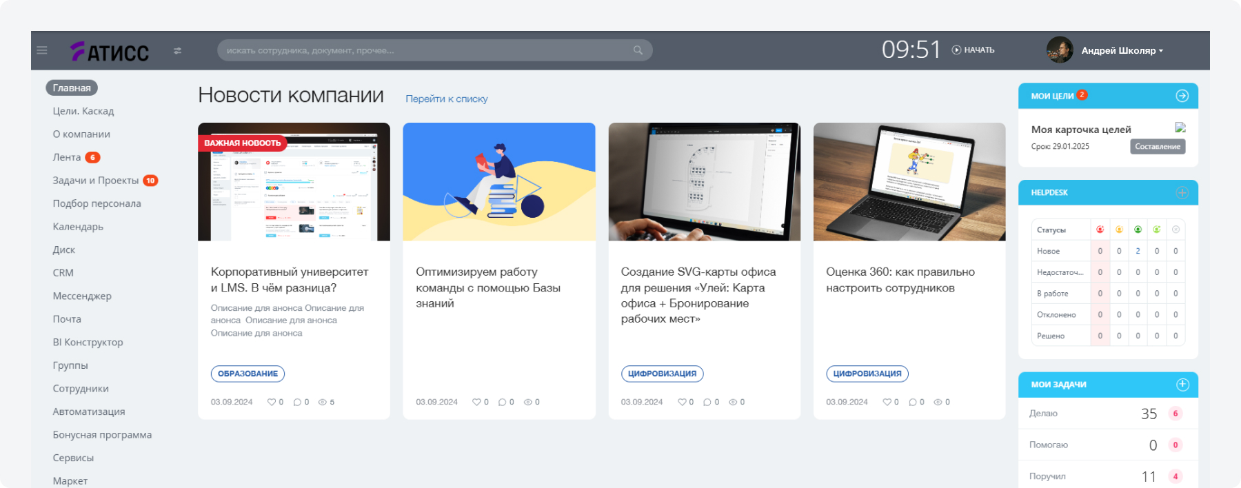 4. Корпоративный университет — для создания и управления онлайн-курсами, мониторинга образовательных траекторий сотрудников.