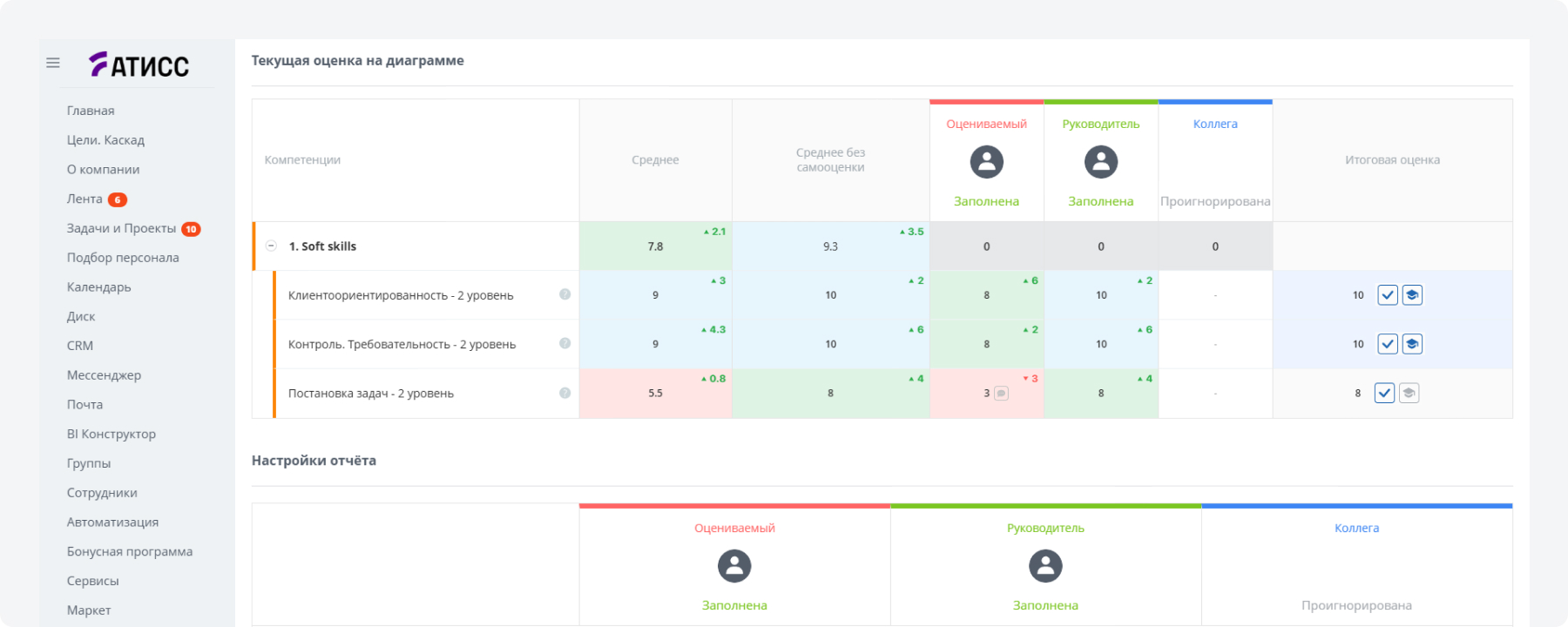 5. Оценка 360 — для проведения всесторонней оценки сотрудников, основываясь на обратной связи от коллег, руководителей и подчиненных.