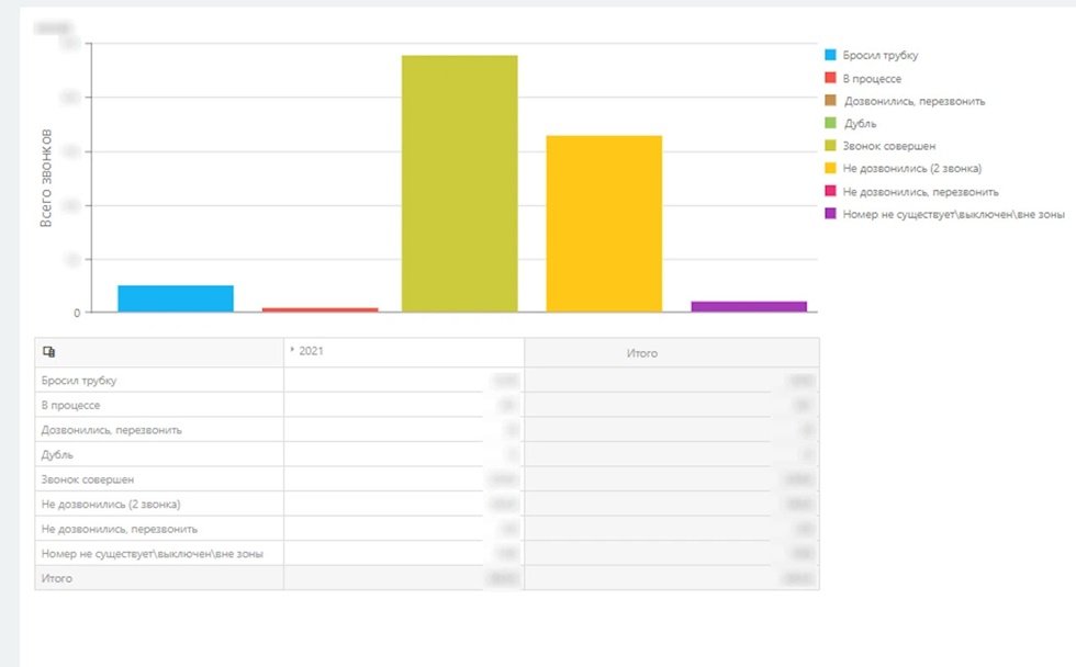 Оперативная отчетность — дашборд в реальном времени, который позволяет оценить текущую ситуацию. Например, можно выгрузить отчет за определенное время работы колл-центра: сколько клиентов обзвонили, сколько осталось, расчетные параметры (процент выполнения плана, процент отказов и т. п.).