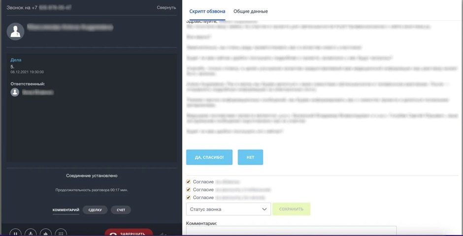 Во время звонка оператор строит общение на основе скрипта, который автоматически формируется в зависимости от ситуации: типа клиента и темы разговора. Например, каждому из этих сегментов будут показываться разные скрипты: