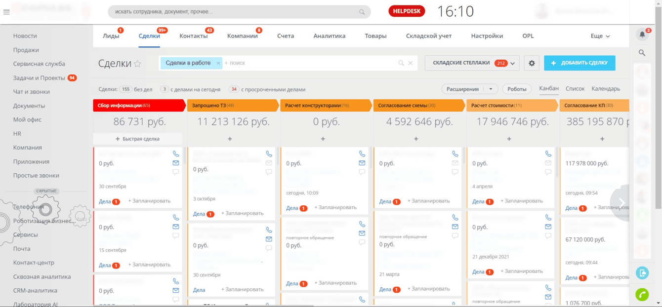 - Настроить управленческую отчетность для отделов продаж.