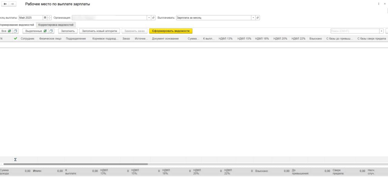 Для выплаты зарплаты в разрезе заказов разработано «Рабочее место на выплату». С помощью доработки расчетчик заработной платы может подобрать сотрудников по заказам и создать документы ведомостей. В доработке видна не только зарплата к выплате в разрезе заказов, но и НДФЛ, а также считаются страховые взносы, т.е. видны все затраты.