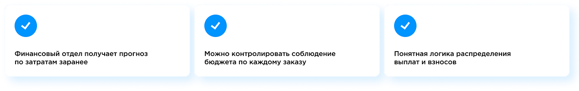 Наша команда сделала большую доработку, чтобы в системе можно было увидеть, сколько средств ушло на конкретные заказы. Цифра по каждому проекту складывается из зарплаты, НДФЛ и страховых взносов.