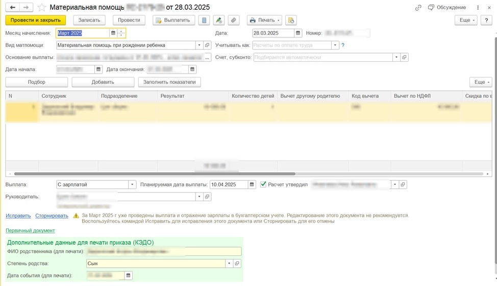 Добавлены дополнительные поля для указания ФИО родственника, степени родства и даты события (например, дата свадьбы). Значения этих полей автоматически подставляются в приказ.