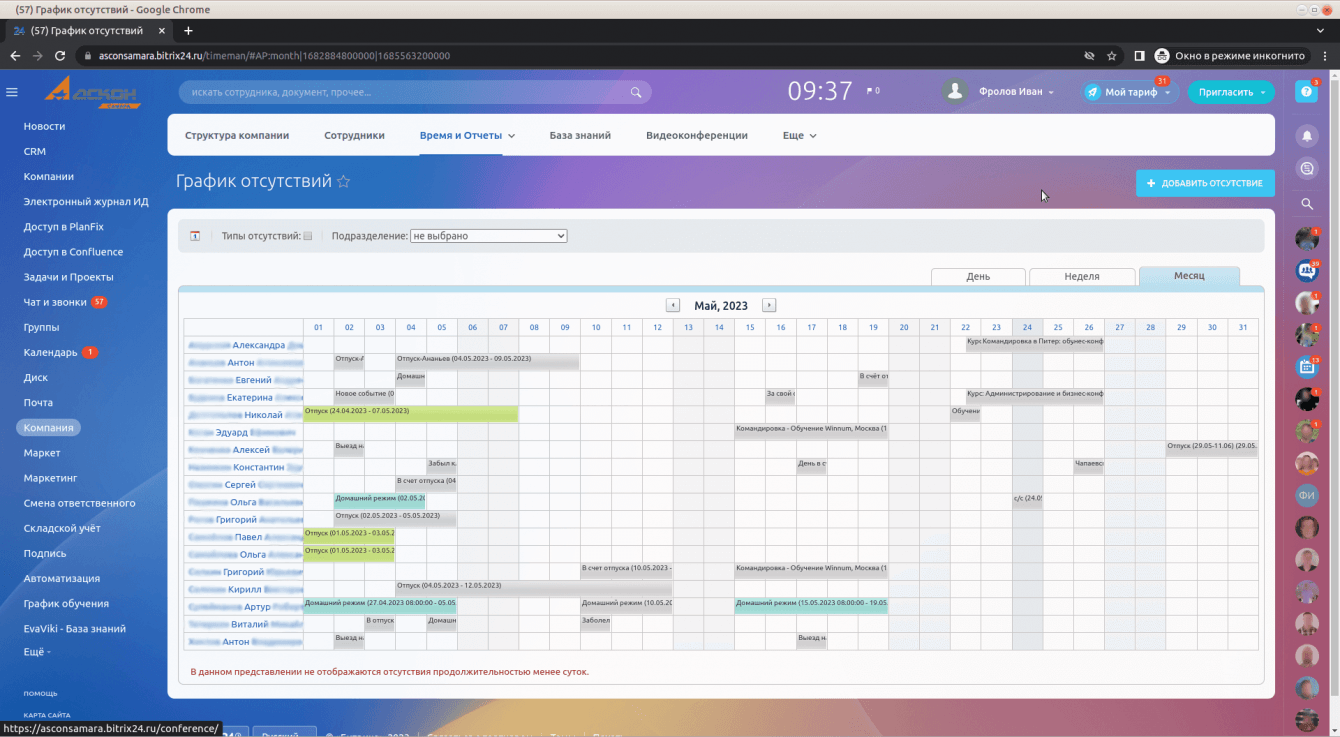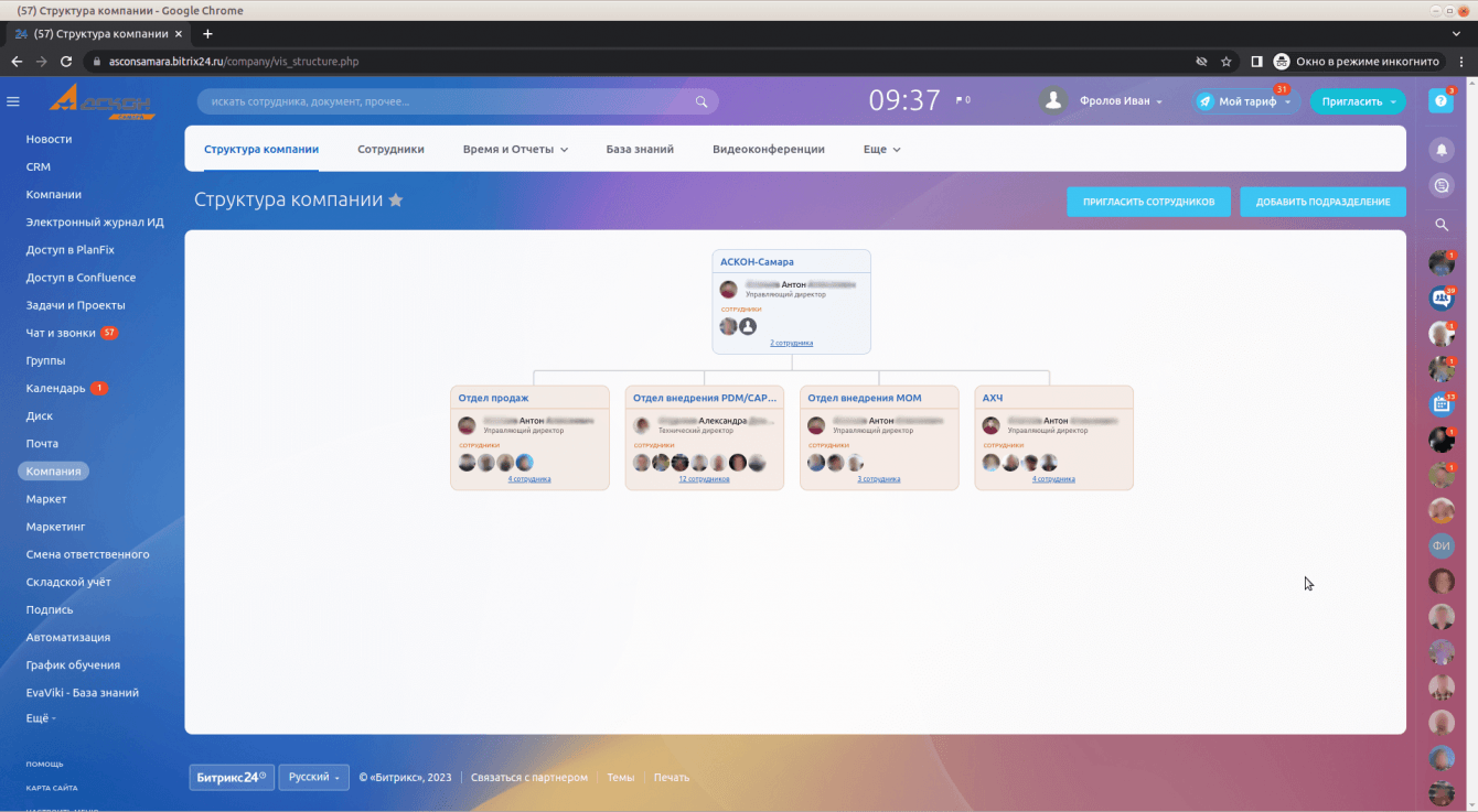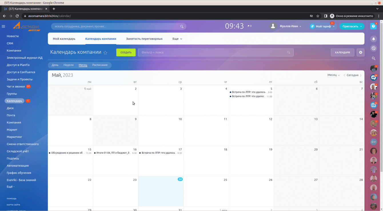 1. На предоставленной Б24 облачной версии были заведены первые пользователи, произведено их обучения основам работы с Б24.