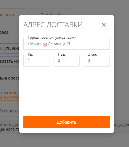 1. При оформлении заказа пользователь указывает адрес доставки.