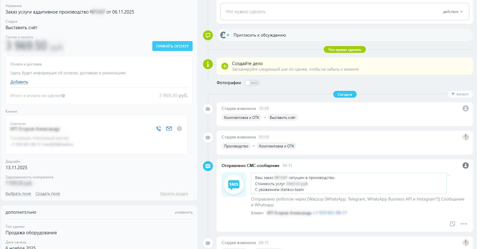 В компании “Станков Групп” процессы продаж и производства завязаны на статусах заказов (сделки в CRM и производственные заказы).