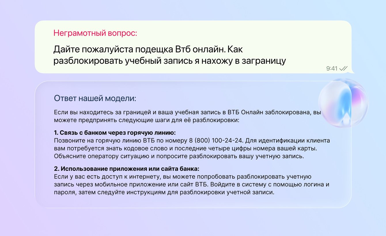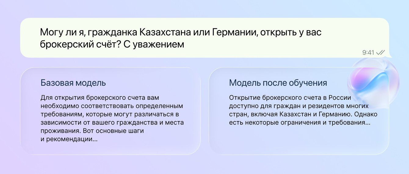 Результат: модель стала лучше понимать финансовые вопросы и давать ответы, актуальные именно для российского пользователя.