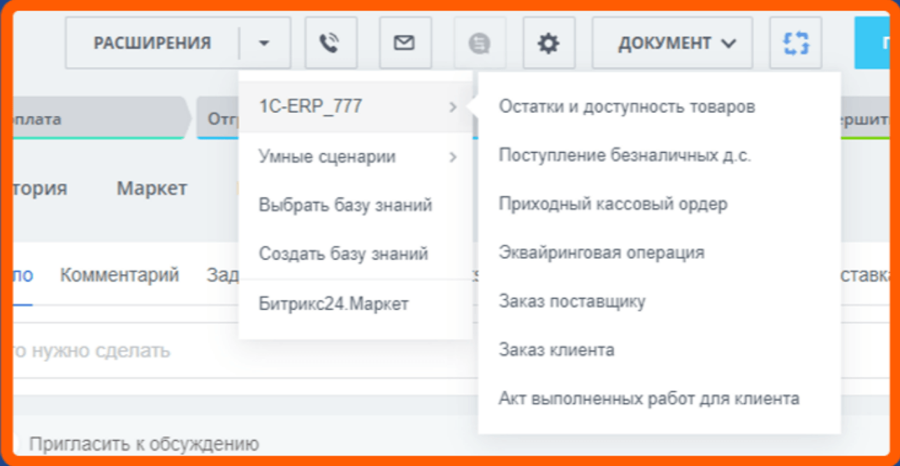 Менеджеры могут работать с 1С прямо из карточки сделки в Б24