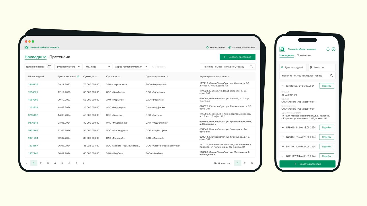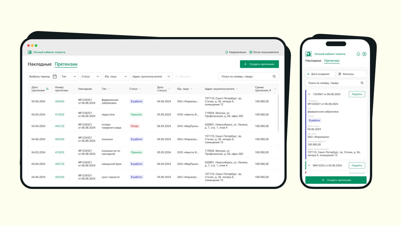 2. Интуитивность сложных процессов – например, работа с претензиями требовала тщательно продуманного UX, чтобы пользователь мог быстро найти нужные документы и понять их статус.