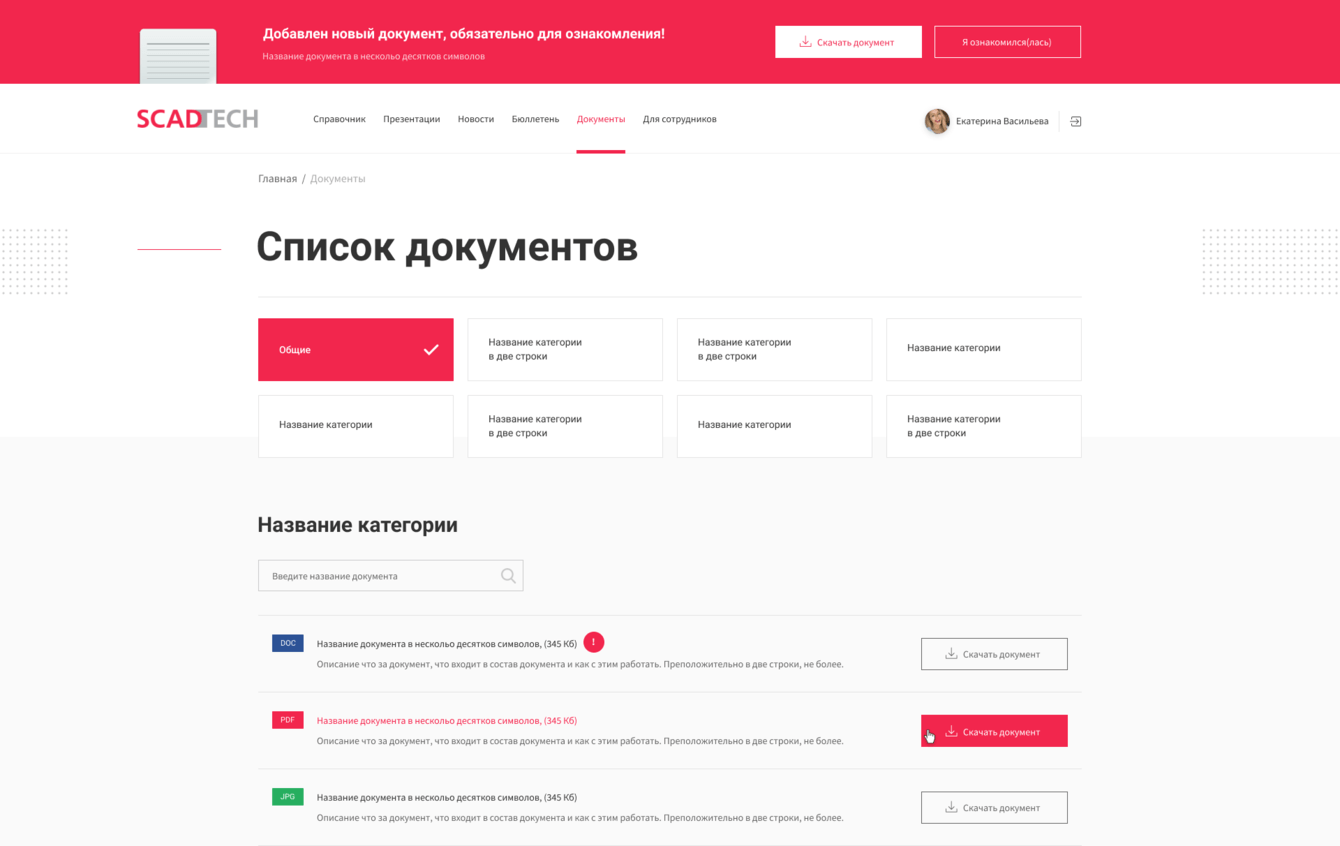Кроме того, мы создали систему оповещений — если на портал загружают обязательный для ознакомления документ, информация об этом появляется в верхней части сайта и не исчезает, пока сотрудник не кликнет на «Ознакомился».