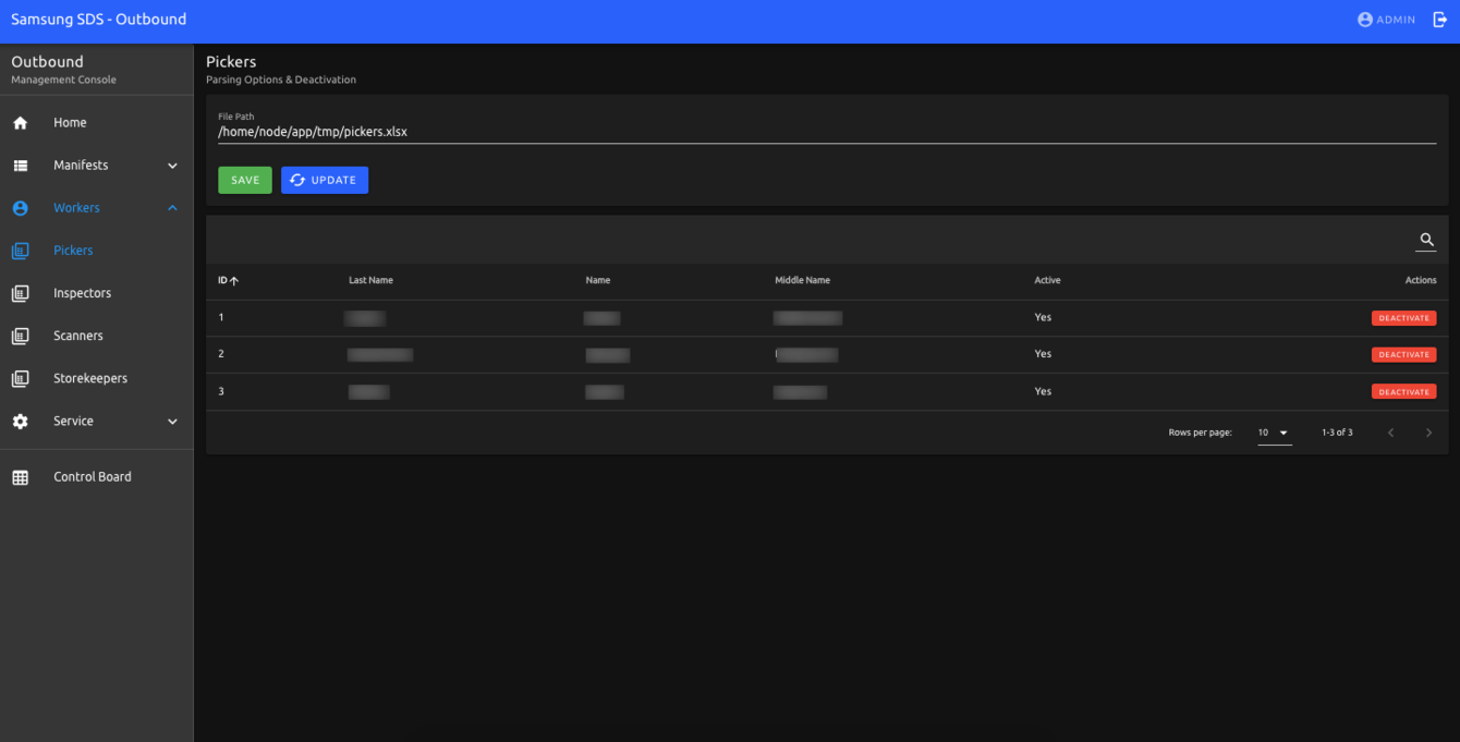 - страницы редактирования пикеров, инспекторов, сканеров, кладовщиков с возможностью активации/деактивации
