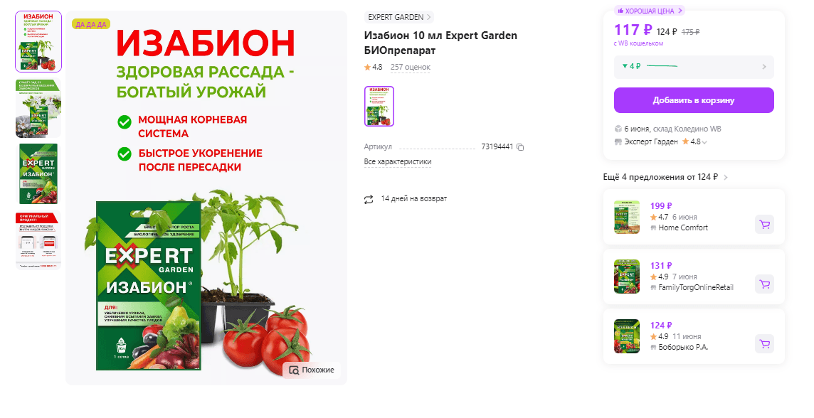Изабион — добавка для комнатных и садовых растений. Дополнительное направление, которое подключили уже в ближе к лету. Оно занимает второе место по конкуренции.