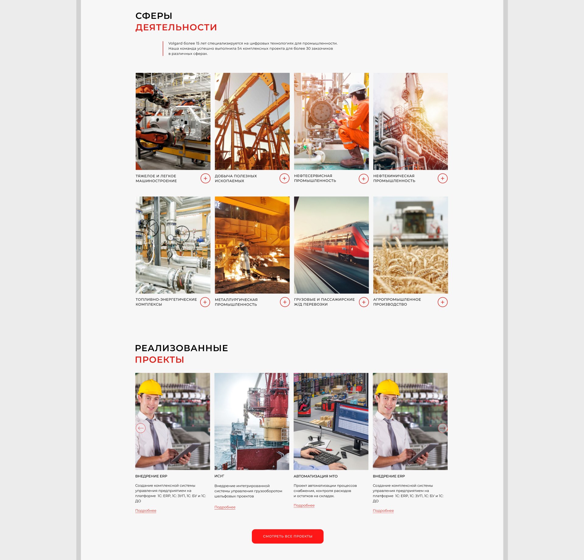 Создать современный корпоративный сайт для компании Волгард, наглядно демонстрирующий внедрение передовых информационных технологий (IIoT, ERP, ТОиР, MES) в повседневную жизнь, бытовую сферу и особенно — промышленное производство российских предприятий. Основной целью проекта было повышение осведомленности аудитории о значении и преимуществах современных цифровых решений, применяемых в различных отраслях промышленности, подчеркивая важность цифровизации производственных процессов и её влияние на развитие бизнеса и общества в целом.