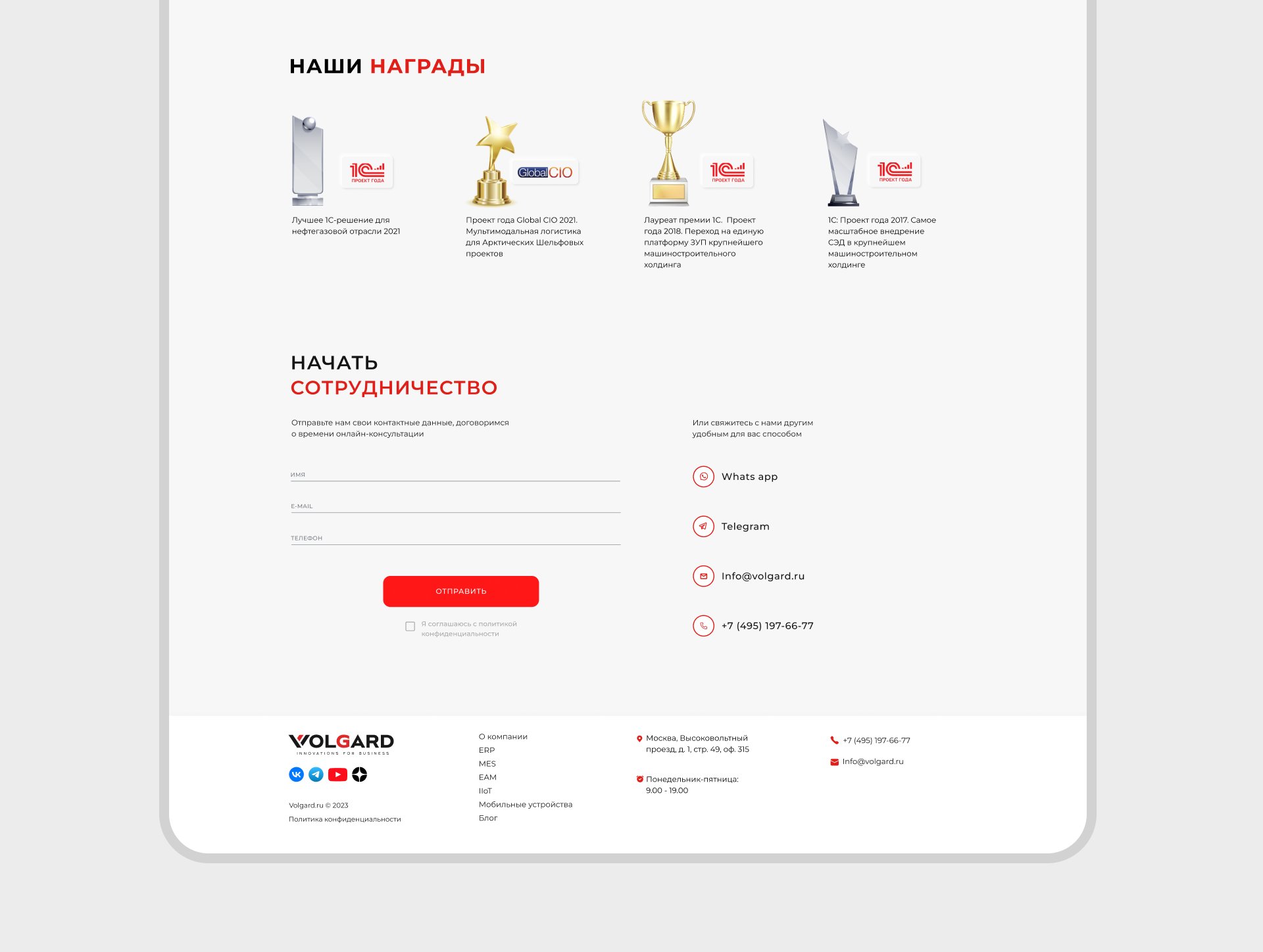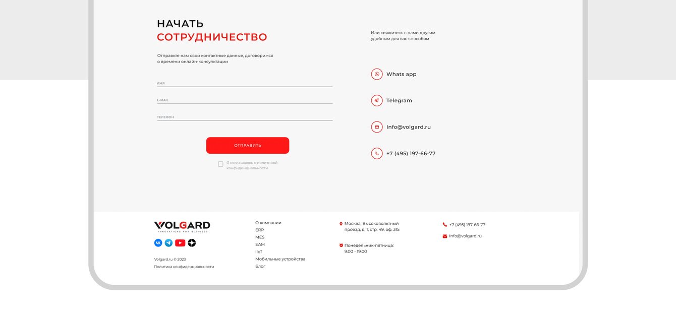 Итоговым результатом стало создание современного и эффективного инструмента коммуникации компании Волгард с клиентами и партнерами, обладающего простым управлением, интуитивно понятным дизайном и высоким уровнем надежности.