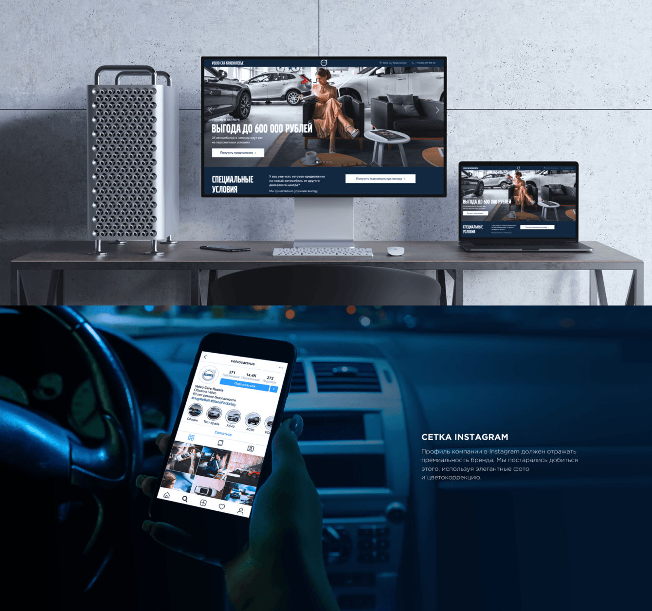 Разработанный визуал и сайт для привлечения потенциальных клиентов успешно выполняет поставленные задачи. Увеличившаяся благодаря выполненной работе, конверсия дилера окупила затраты на разработку. Сайт соответствует фирменному стилю компании.