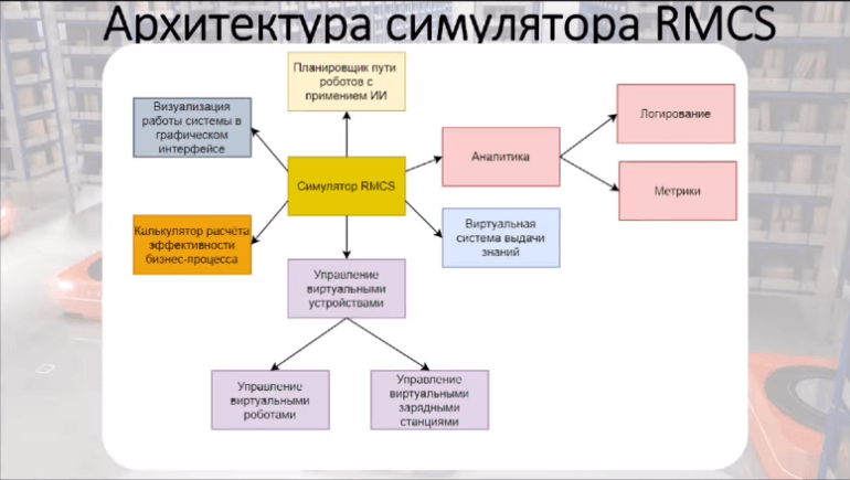 Разработанный прототип является отдельным модулем по планированию траекторий в RMCS (Robot multi control system). Одной из сфер применения флота AGV/AMR является логистика, где на складах необходимо роботизировать процессы размещения и подбора.