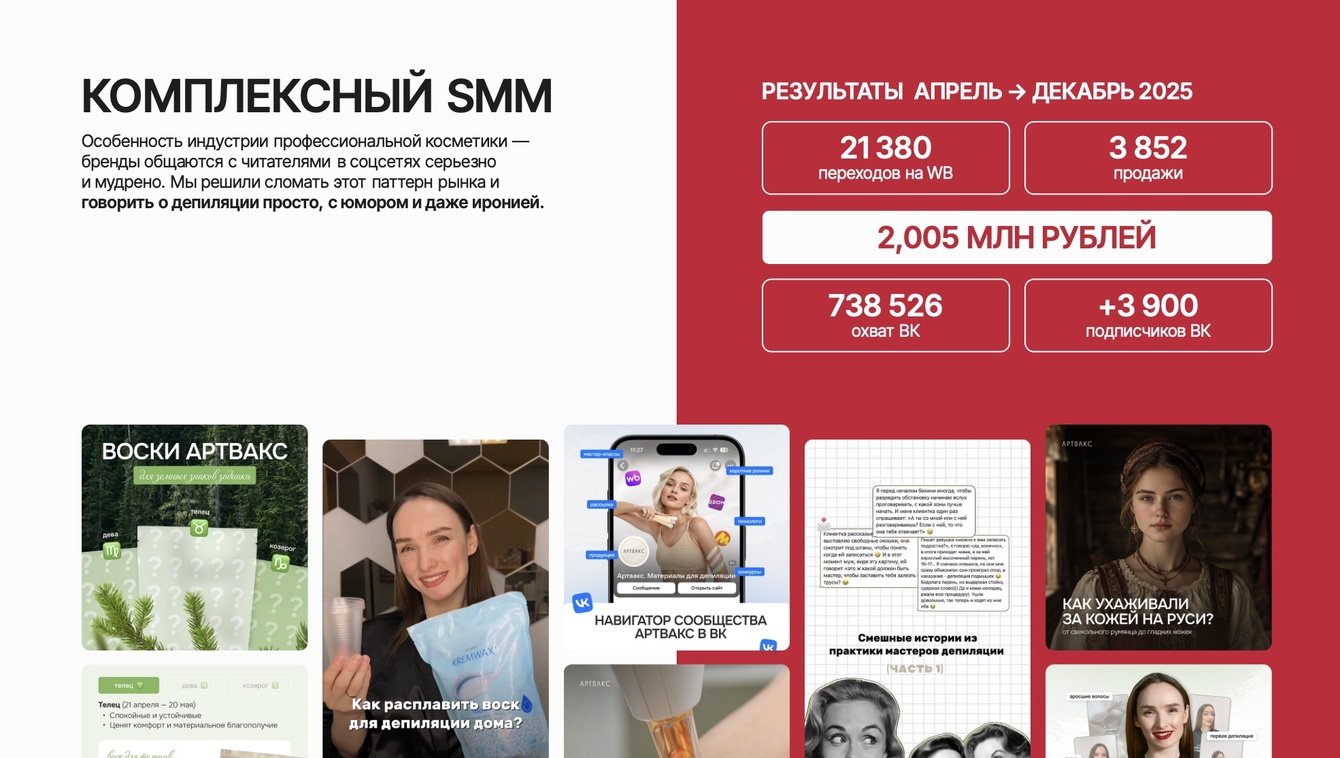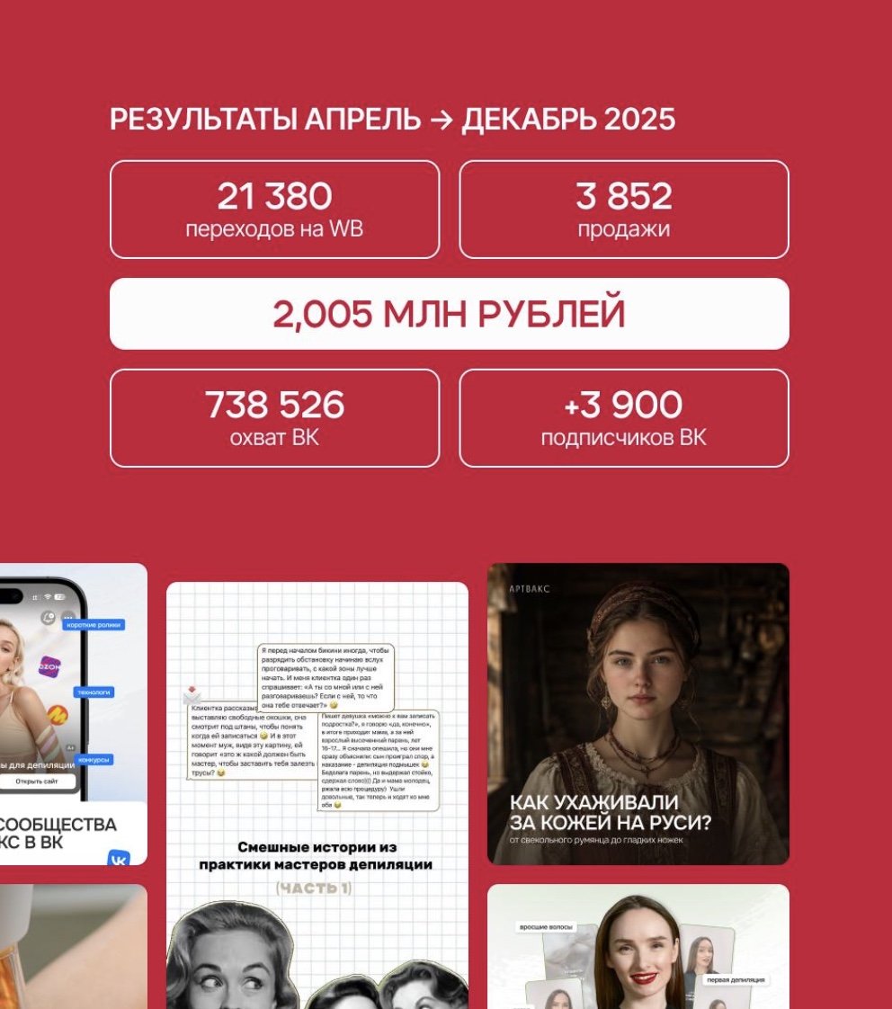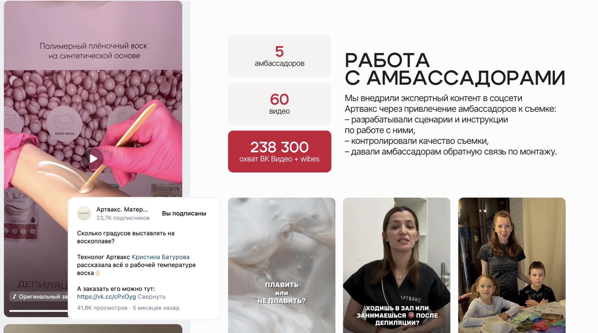 В 2025 году мы начали работу с брендом восков для депиляции Артвакс. Молодое производство в Москве, четыре линейки восков, продающихся на маркетплейсах.