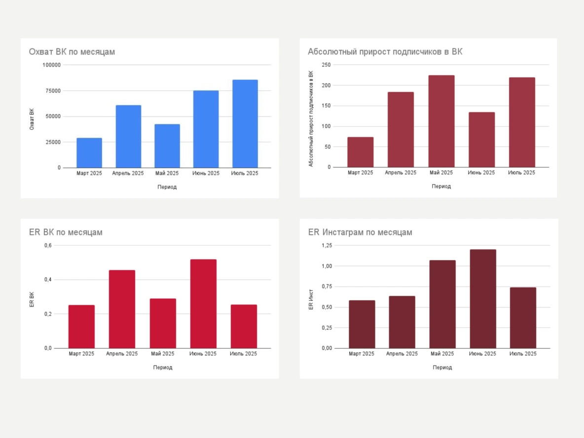 +780 подписчиков ВК (по 195 в месяц — перевыполнение KPI на 216%)