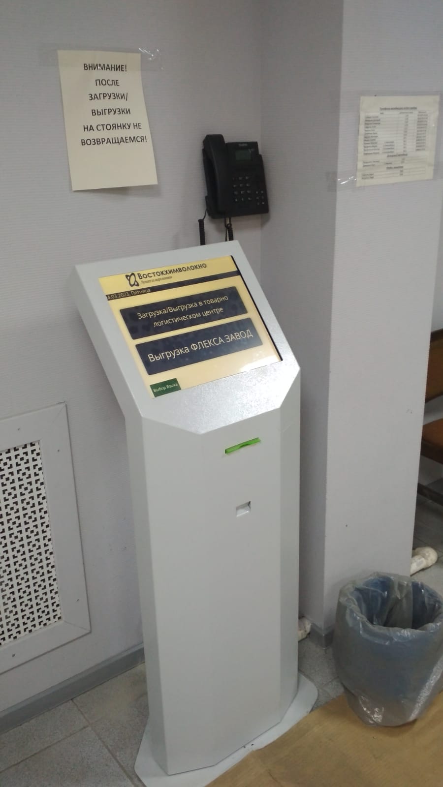 Специалисты компании «Элеко» связали в единый логистический процесс два склада, весовую для машин, три КПП, диспетчеров, которые организовывают проезд транспортных средств, водителей и разработали два маршрута - на выгрузку и погрузку. Система электронной очередью контролирует каждый шаг, начиная от выдачи талона водителю на разгрузку/загрузку, взвешивание авто, оформление документов, заезд/выезд на территорию завода. Оповещение водителей о последующем действии происходит через SMS на сотовый телефон.