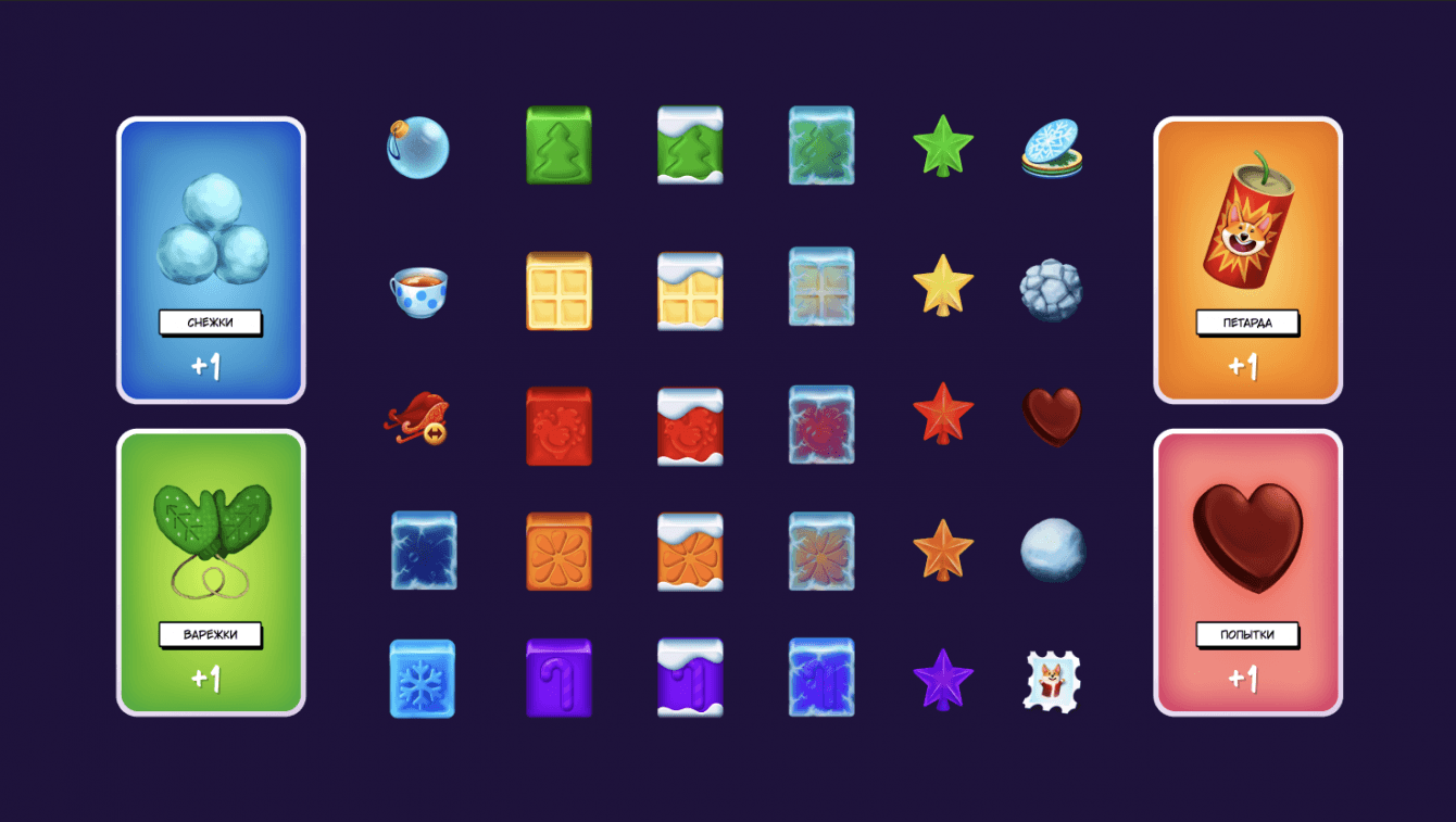 В сравнении с прошлым годом изменилась механика игры. Вместо привычного «три в ряд» мы использовали bubble match, в которой не нужно менять фишки местами, а достаточно нажимать на группы одинаковых. Изменилась и система попыток: они стали сниматься только при проигрыше, что значительно изменило игровой процесс и позволило пользователям играть на 28% дольше.