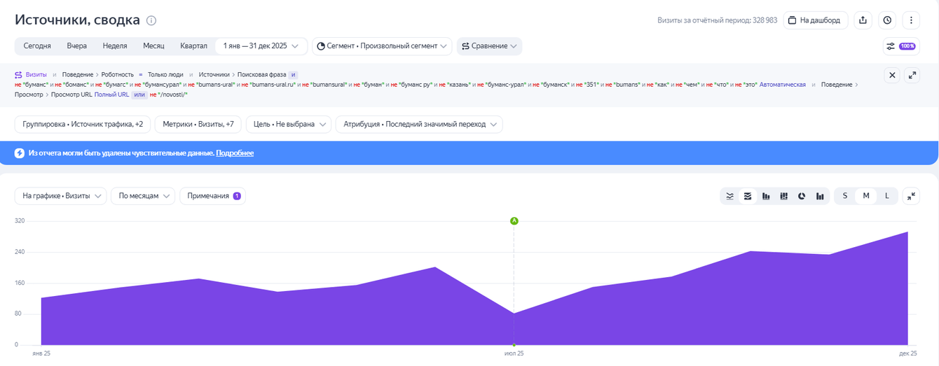 Был установлен и корректно настроен счётчик Яндекс.Метрики, что обеспечило полноценный сбор данных о трафике, поведении пользователей и конверсиях.