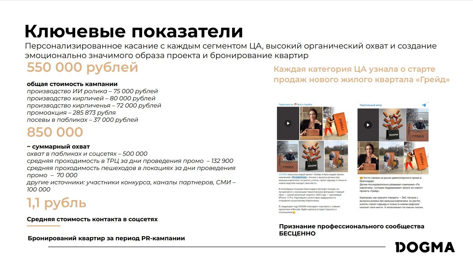 Социальные сети компании DOGMA (основные площадки: Telegram и ВК), бизнес-аккаунты менеджеров по продажам, сайт компании,городские паблики, BTL (промо) в точках притяжения города, партнеры и их социальные сети.