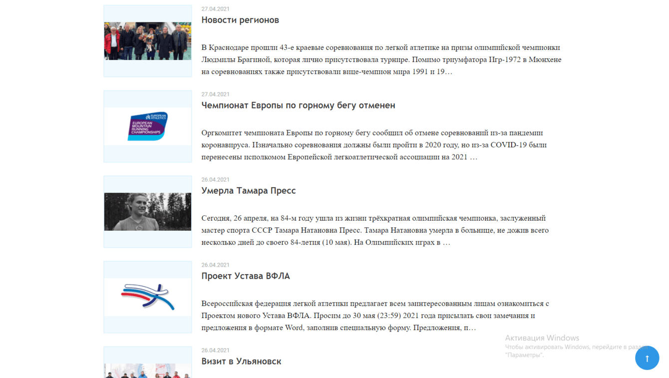 Создать новостной портал для Всероссийской федерации легкой атлетики