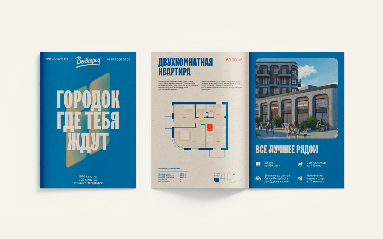 Во время исследований нащупали, что аудитория жилого комплекса разношерстная. Поэтому в фирменном стиле взяли ориентир на ретро и джаз. Вручную отрисовали логотип, в основу айдентики взяли форму окна.