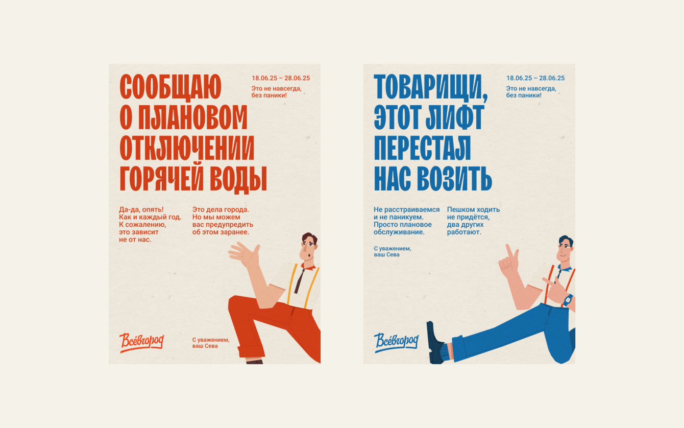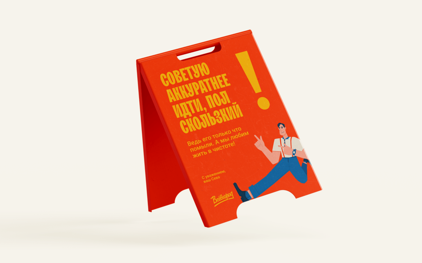 Маскотом бренда стал Сева, который общается с жителями неформально. Так, например, он может сообщать неприятные новости приятным образом)