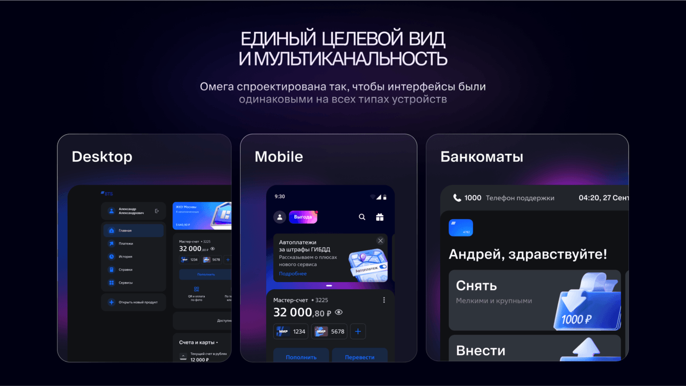 Благодаря новому подходу к разработке архитектуры динамических дизайн-систем, удалось сделать решение, позволяющее быстро адаптироваться для вывода интерфейса на любой поверхности, будь то пользовательское приложение, внутренняя ARM-система или банкоматы, используя богатые возможности темизации любого элемента и параметра буквально в несколько кликов.