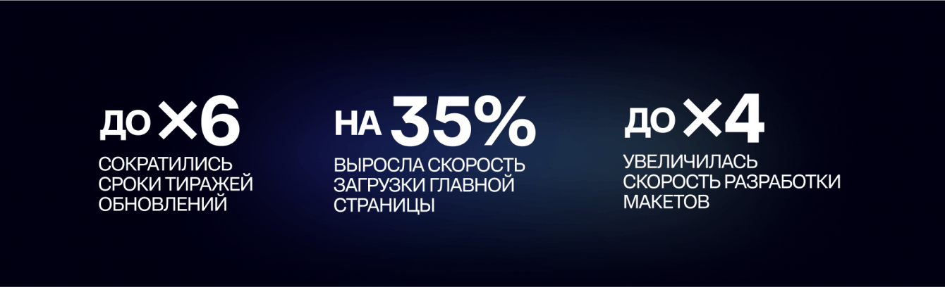 Помимо архитектуры внедрили новые инструменты сборки интерфейсов, которые позволяют сократить время проектирования до 4 раз, сохраняя при этом высокий уровень консистентности вне зависимости от уровня дизайнера, будь то начинающий специалист (junior) или профессионал высокого уровня (senior).