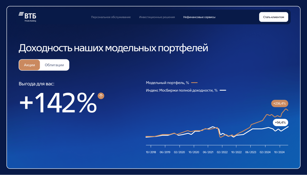 Мы превратили сложную инвестиционную экспертизу в понятный и наглядный опыт для клиента. Вместо перегруженных условий и терминов пользователь сразу видит главное — как работает рост его капитала и какие инструменты помогают его достигать.