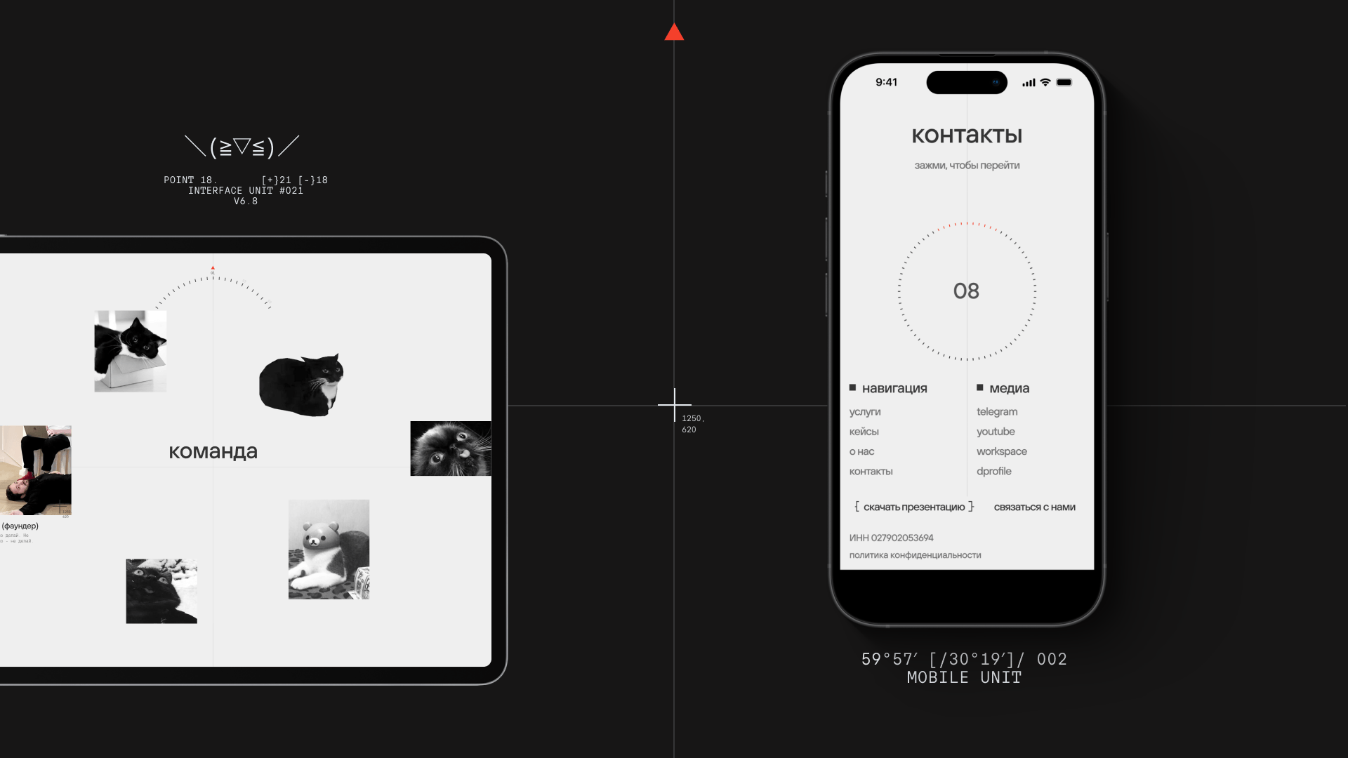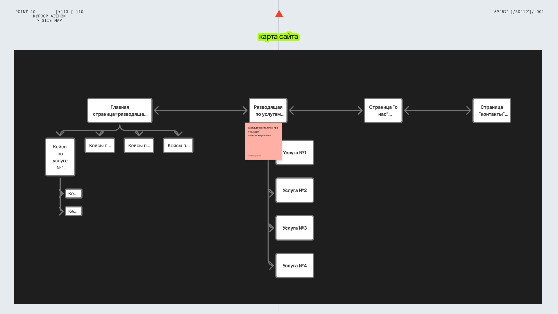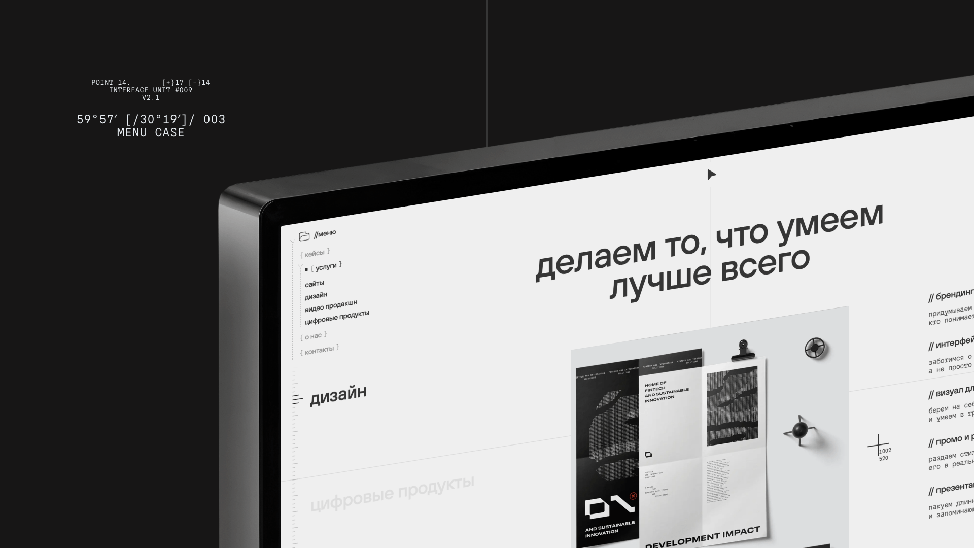 - навигация через «ось координат» — пользователь ощущает структуру, даже если верстка нестандартная.